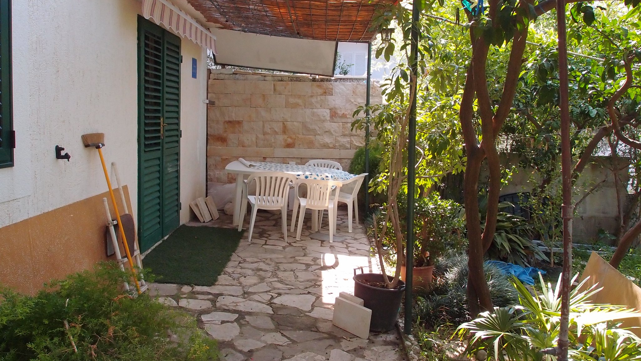 WC, sprcha, posezení v uzavřené zahradě